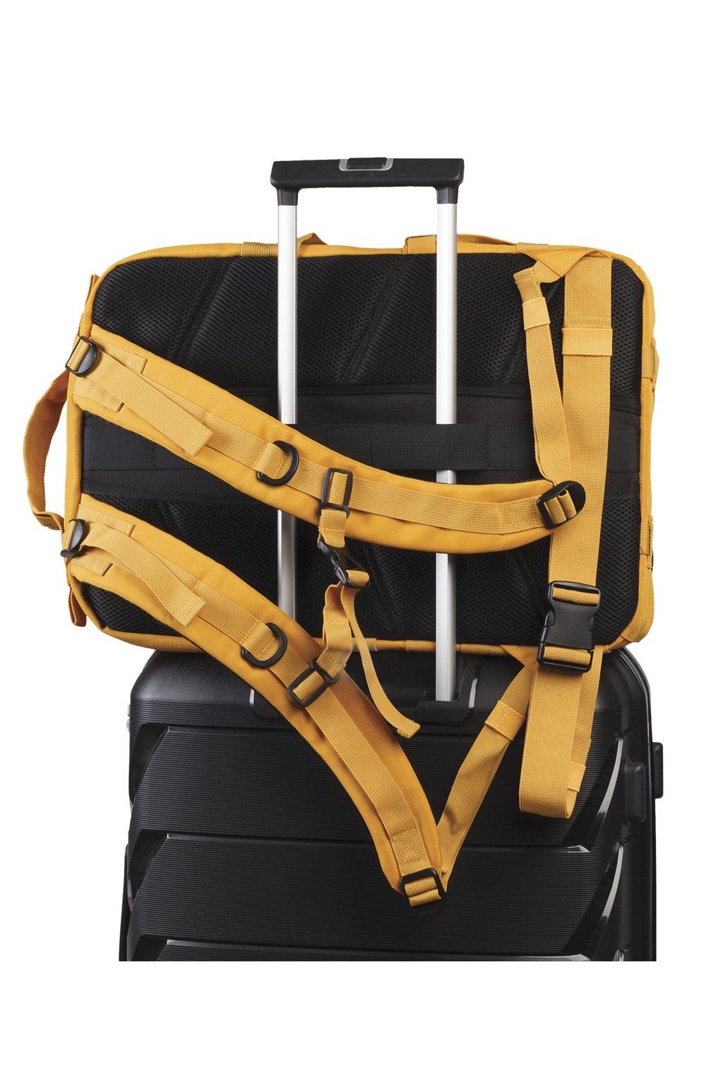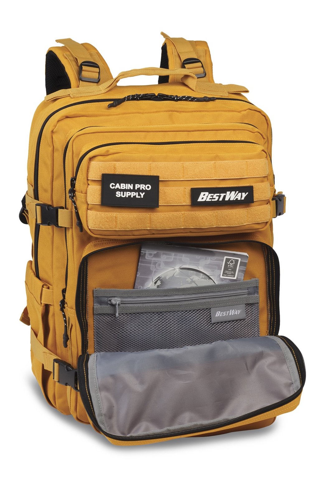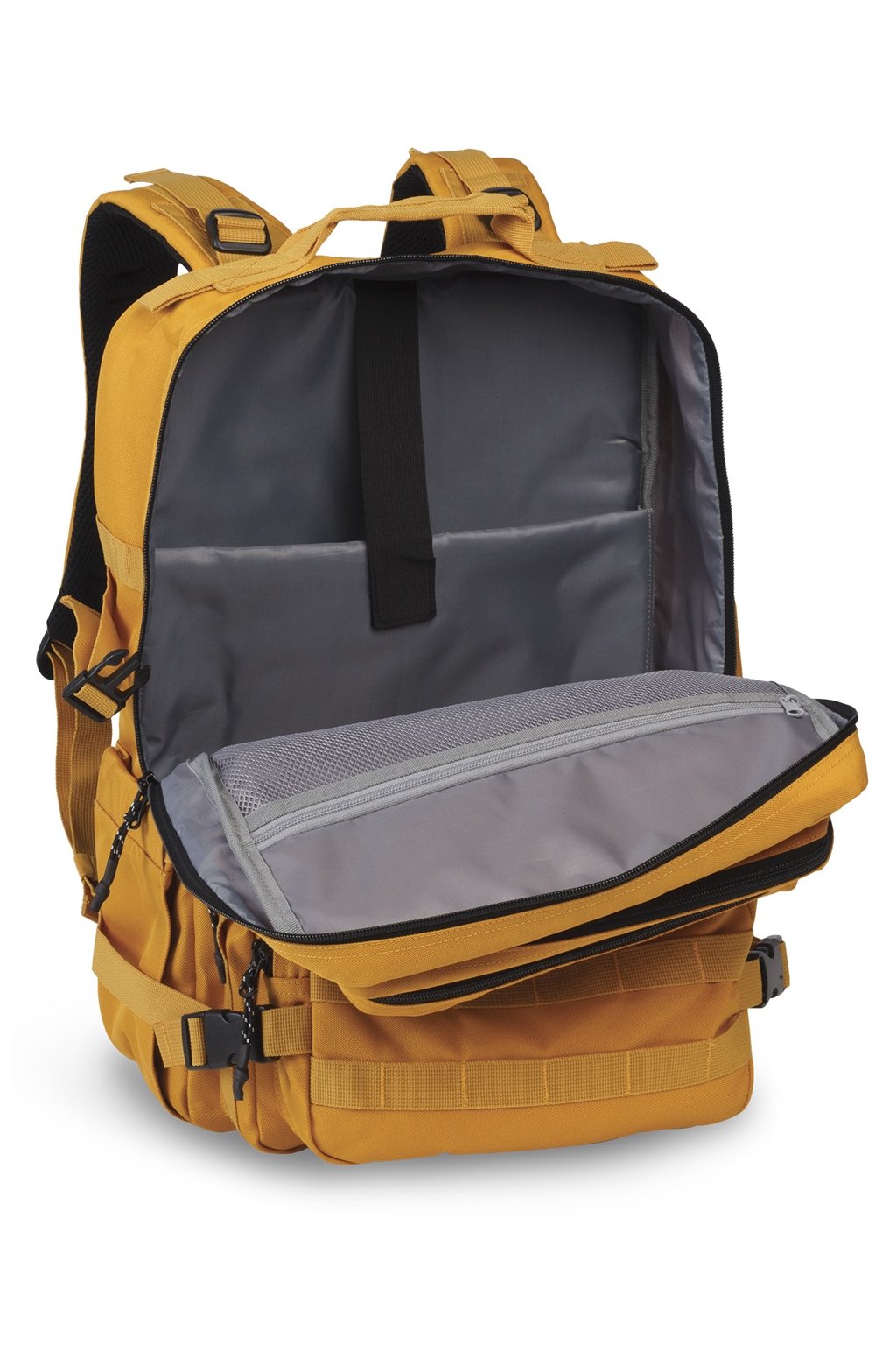 Hlavný priestor ktorý sa otvára dvojcestným zipsom obsahuje prepážku na notebook aj sieťované vrecko na zips. Pred ním sa nachádza ešte jedno samostatné veľké vrecko. Toto úložisko dopĺňa niekoľko ďalších vreciek na prednej strane. Na povrchu celého batohu je navyše veľký počet pútok na uchytenie vecí, niektoré dokonca vybavené suchým zipsom.