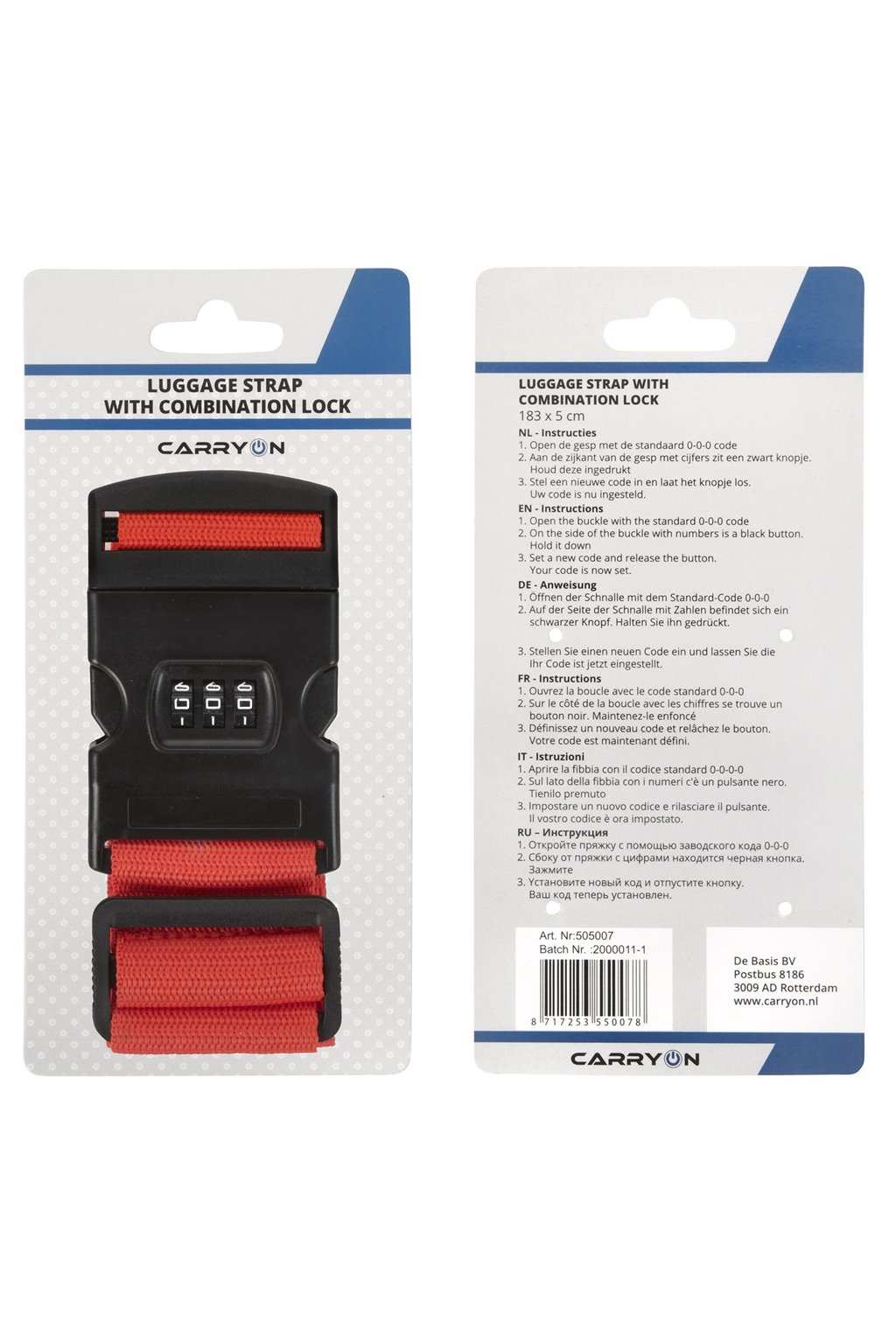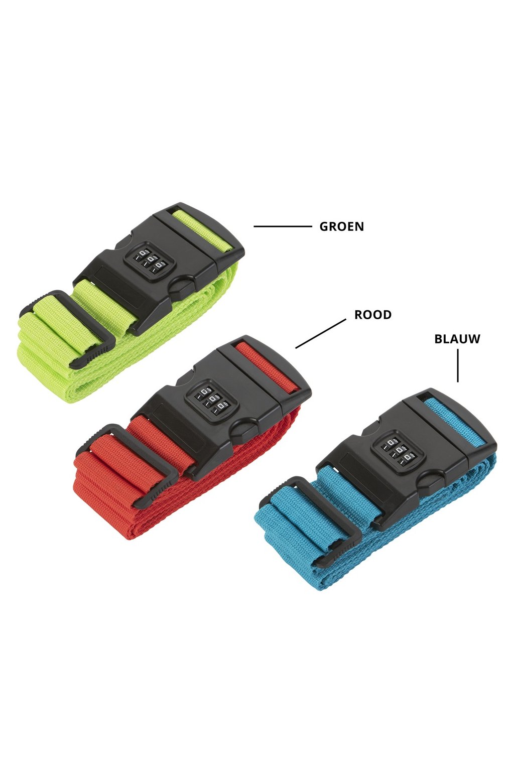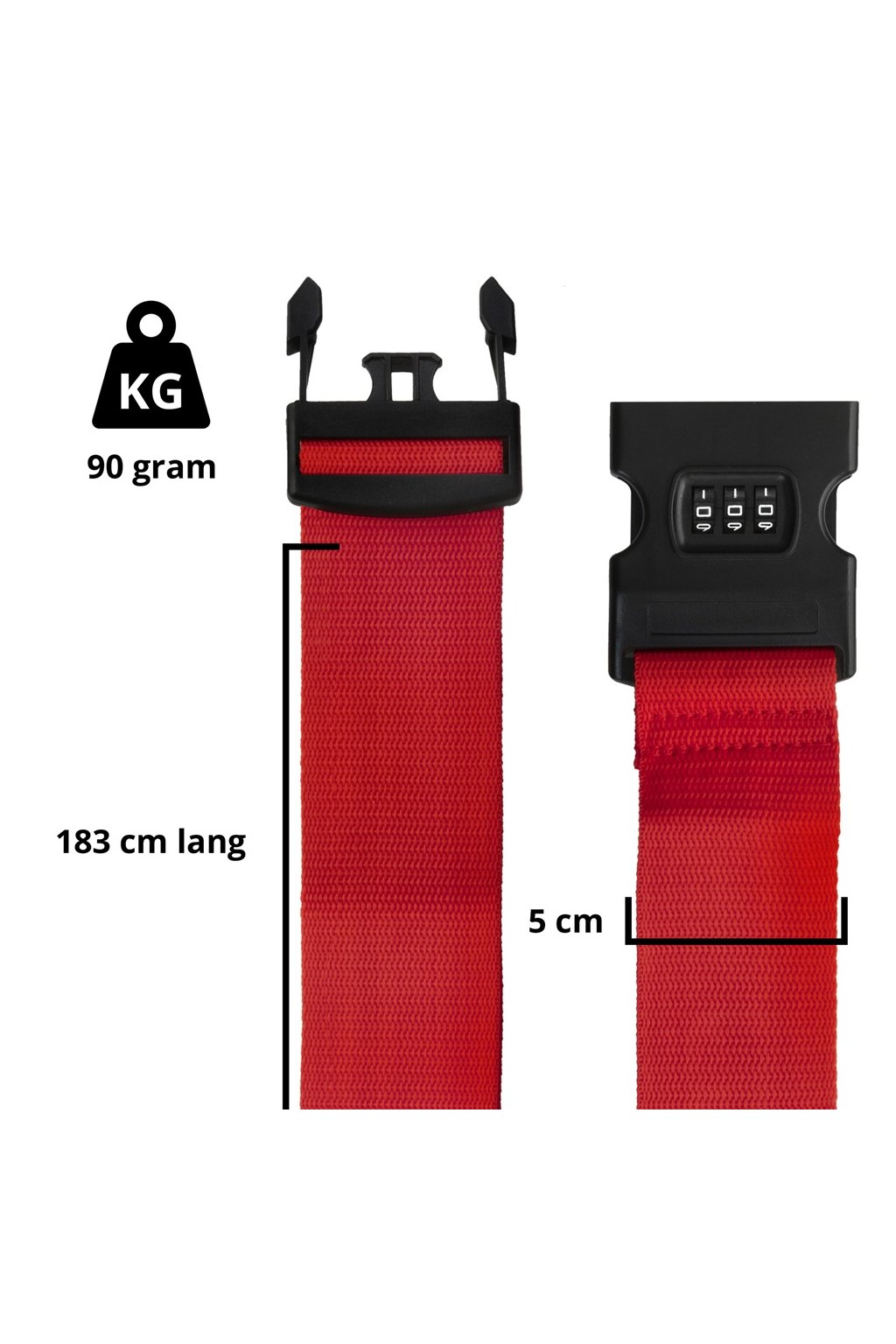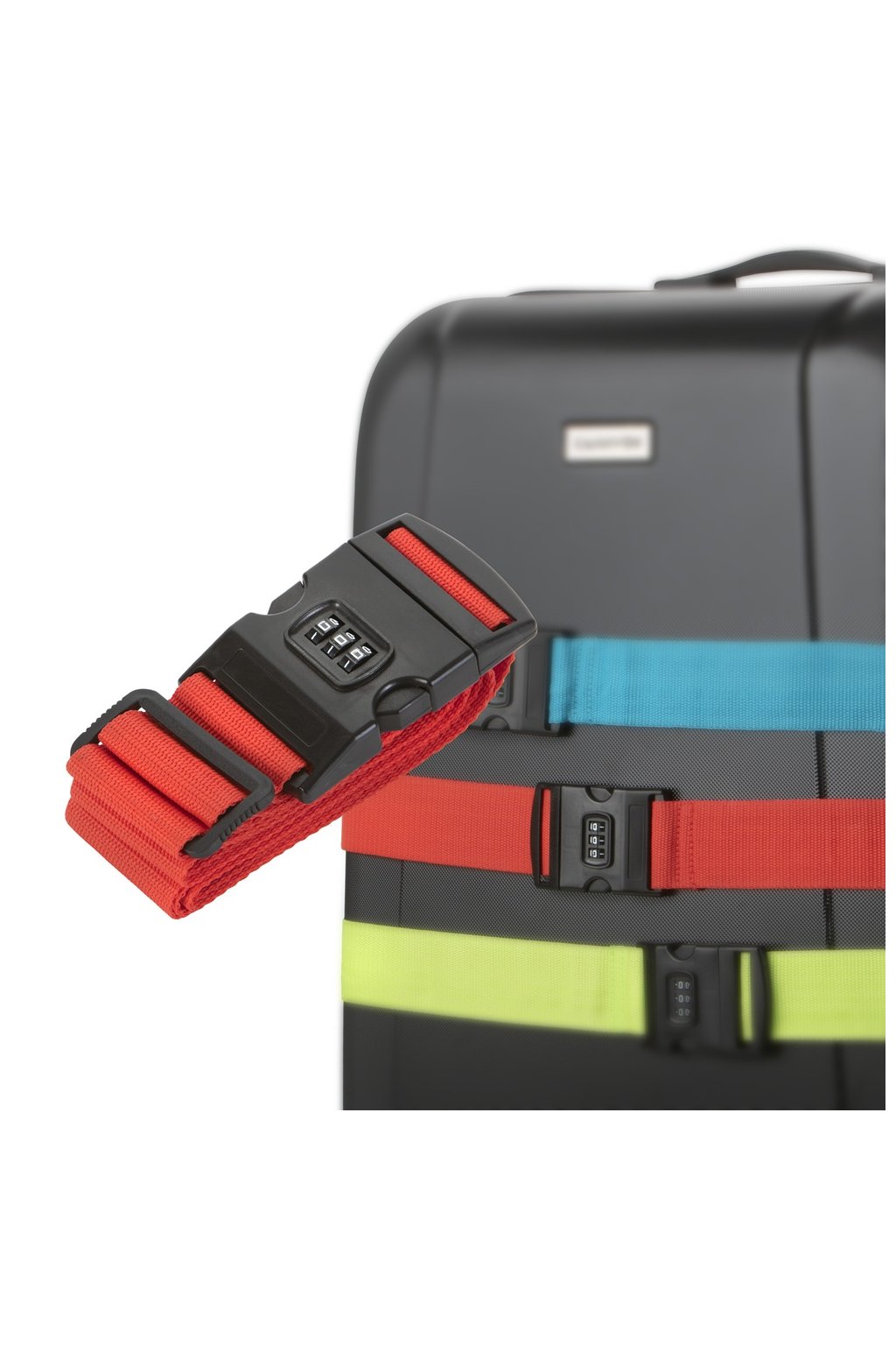 Nastaviteľný pás s maximálnou dĺžkou 183 cm a zapínajúcou sa čiernou plastovou prackou. Šírka pásu je 5 cm. Pás je možné uzamknúť zámkom s trojčíselným kódom a zaistí bezpečnosť vašej batožiny na cestách.