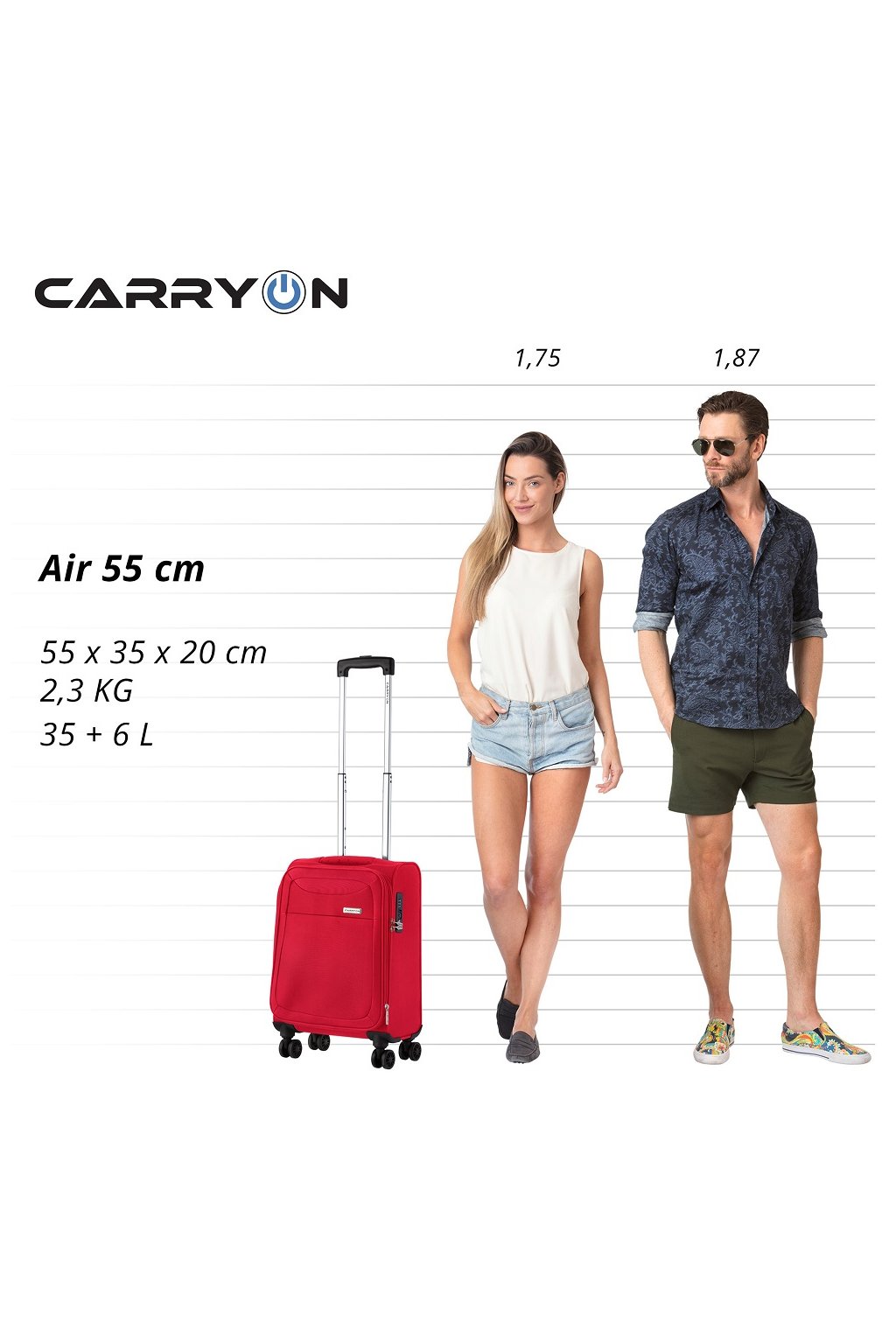 Model Air je dlhodobo hlavným textilným modelom a vlajkovou loďou značky CarryOn. Jeho výbave nechýba vôbec nič a už názov napovedá že dôležitou prednosťou je tu ľahkosť. Tou ďalšou je potom možnosť zväčšenia objemu pri všetkých veľkostiach. Vnútri nájdeme veľké bočné vrecko na veku a fixačné popruhy.