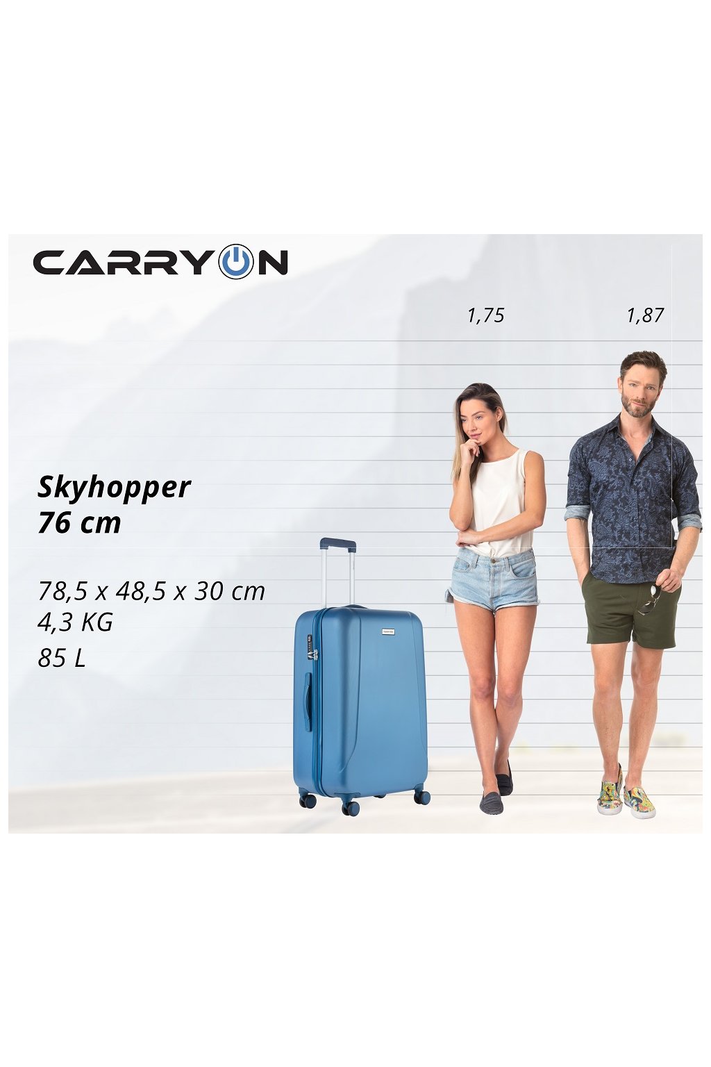 Skyhopper je moderná batožina, ktorá spĺňa všetky nároky na cestovanie. Škrupina je z kvalitne spracovaného polykarbonátu. S vytiahnutou vysunovacou rukoväťou narastie výška na 105 cm a samozrejme nechýbajú pevné rúčky. Vnútri nájdeme zipsom oddelený priestor, praktický organizér aj fixačné popruhy, všetko doplnené príjemným polstrovaním.